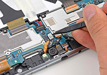 Специалист сервиса проводит ремонт: заменяет поврежденную часть работоспособной оригинальной деталью